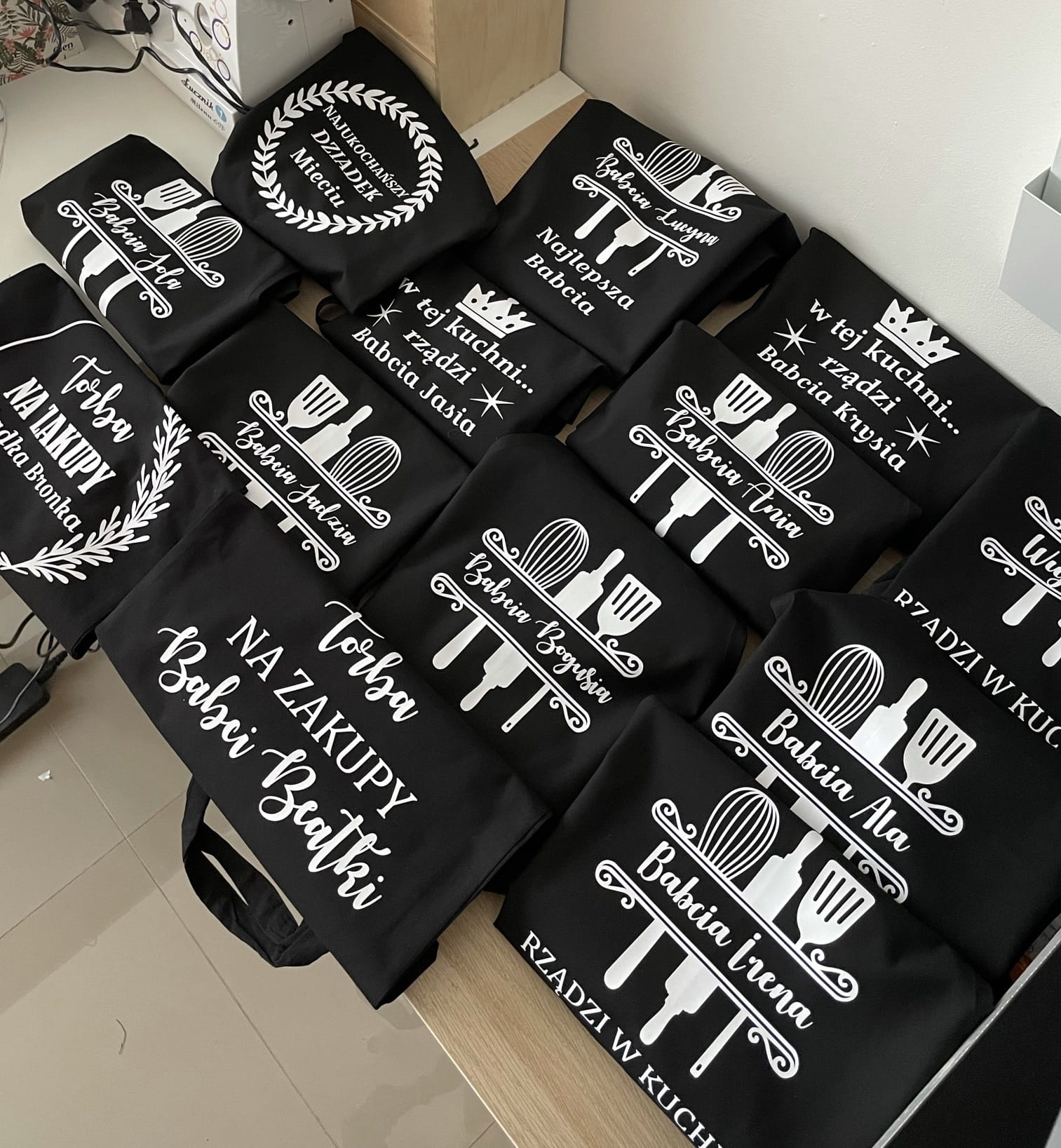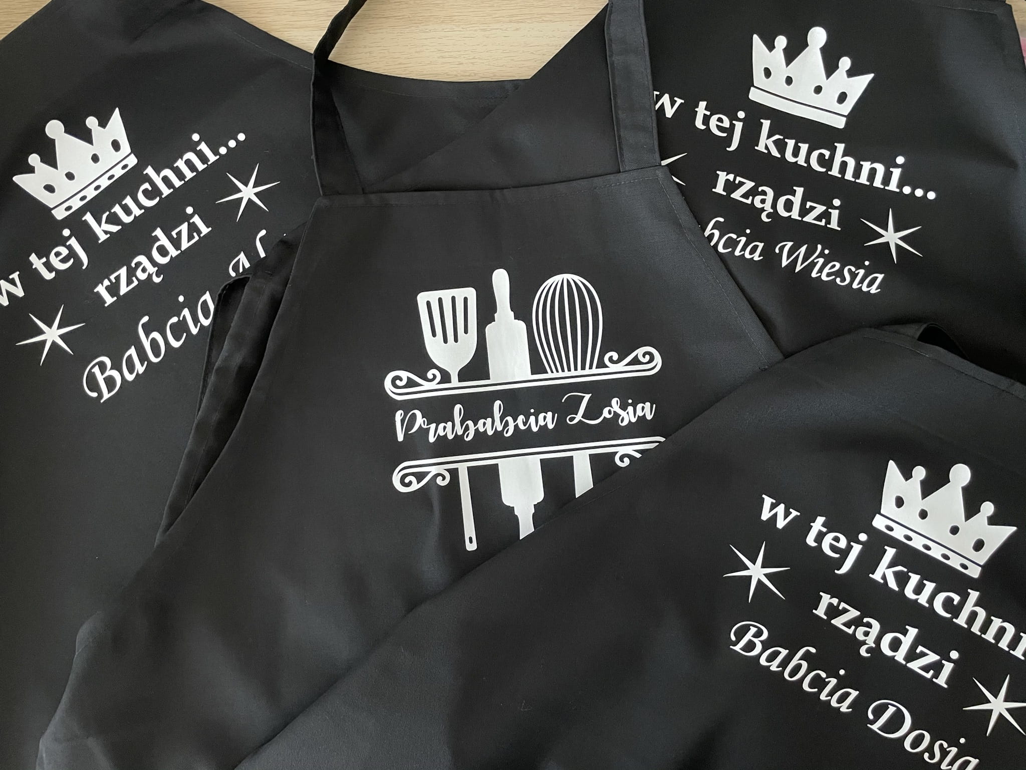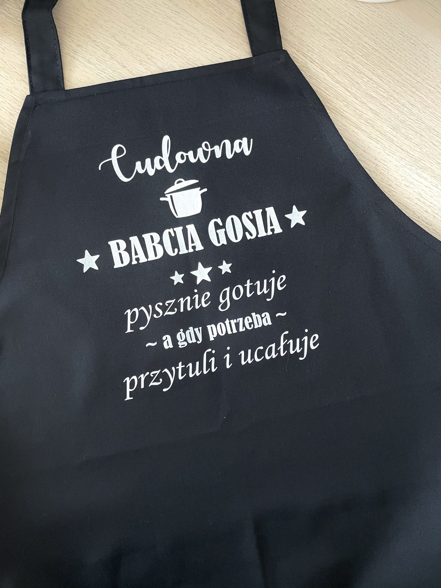 Fartuszek kuchenny to idealny prezent dla Babci z okazji Jej dnia, oczywiście zarówno Babcie jak i Dziadkowie mogą lubić gotowanie, więc wzór z imieniem można również wykonać dla Dziadka.