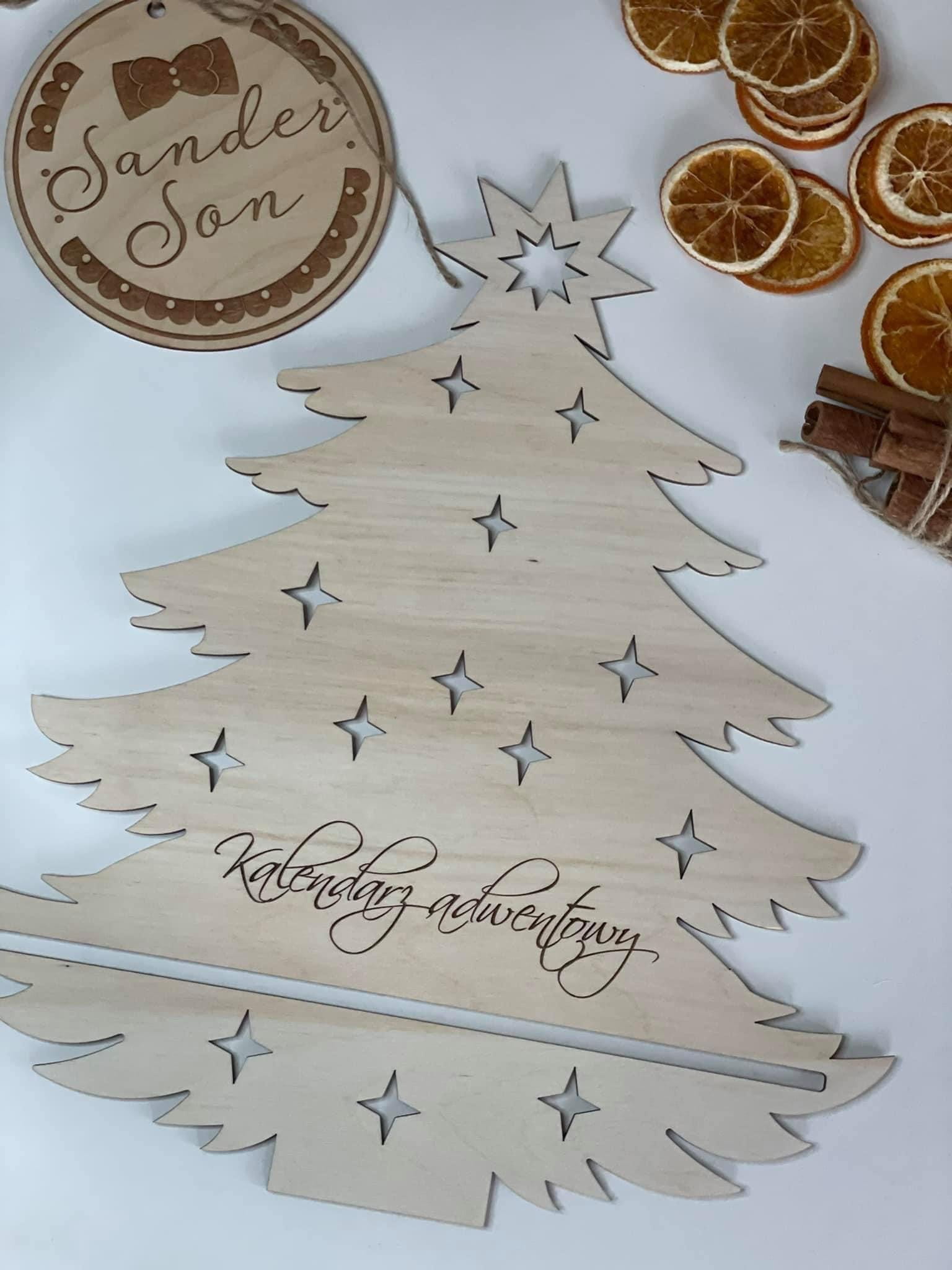 Rewelacyjna drewniana baza - choinka z pięknym grawerem - podstawa do kalendarza adwentowego, który możesz wykonać razem ze swoim dzieckiem we własnym domu :)