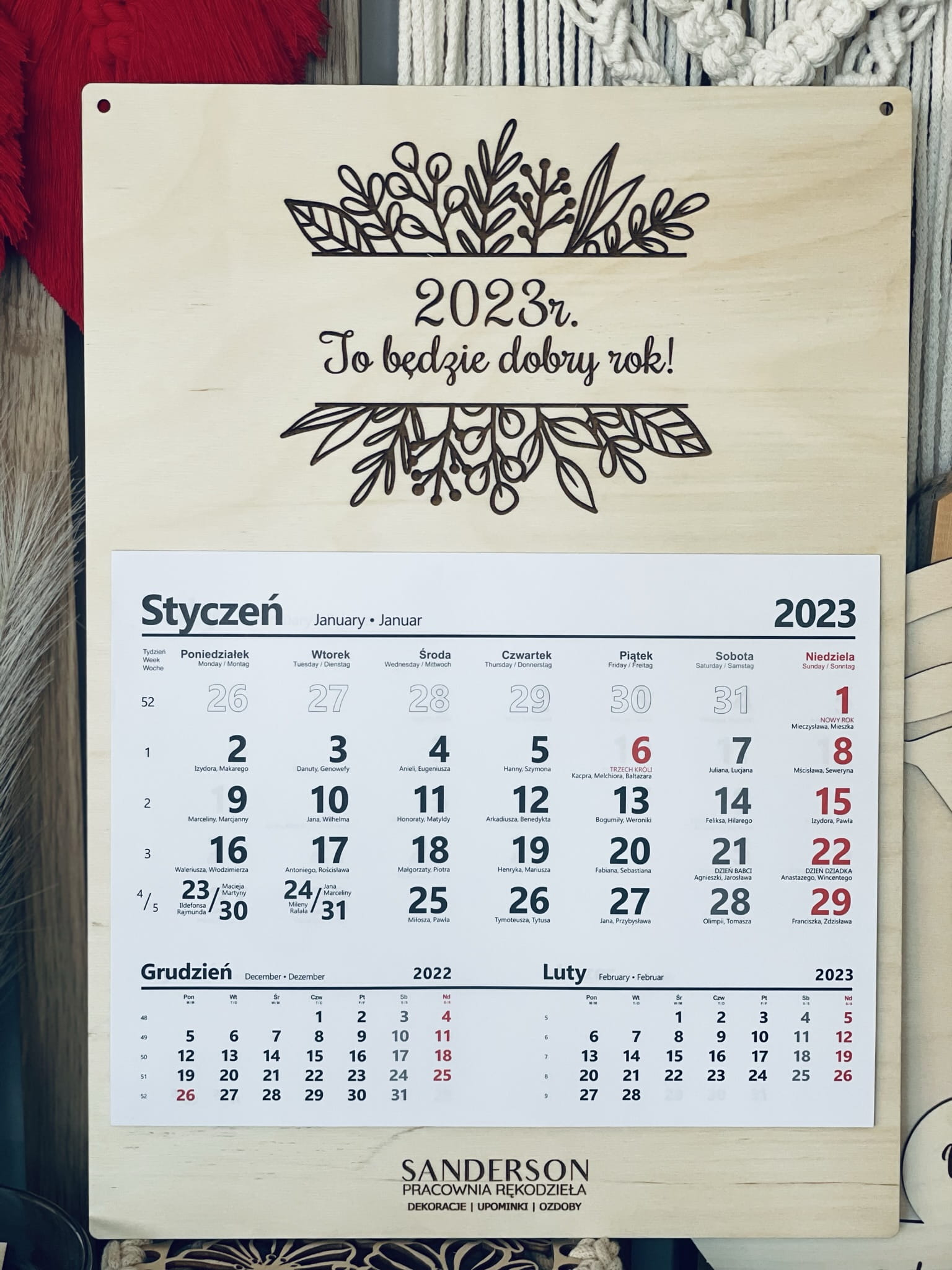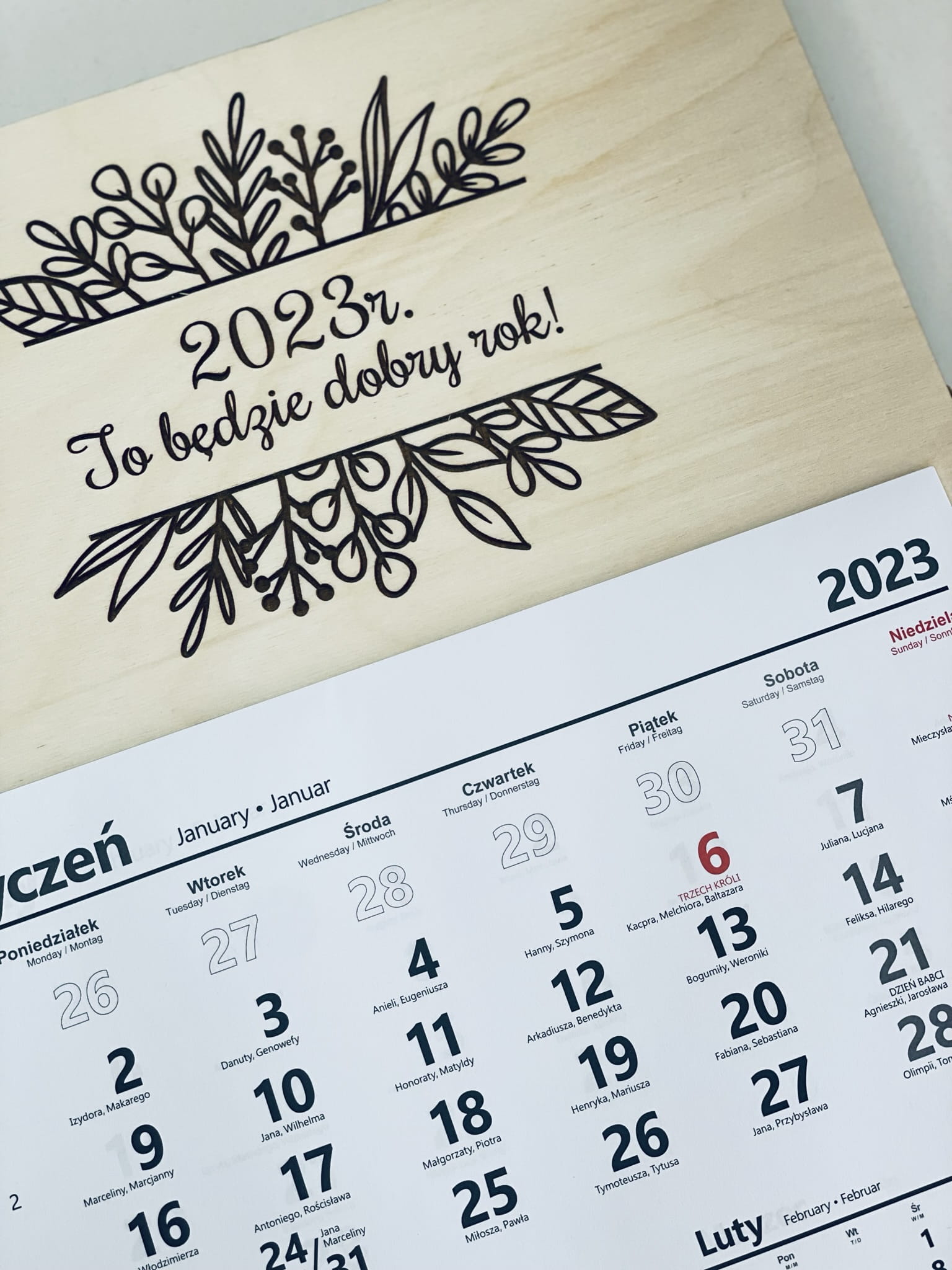 Do drewnianej bazy przyczepione jest papierowe kalendarium jednodzielne.