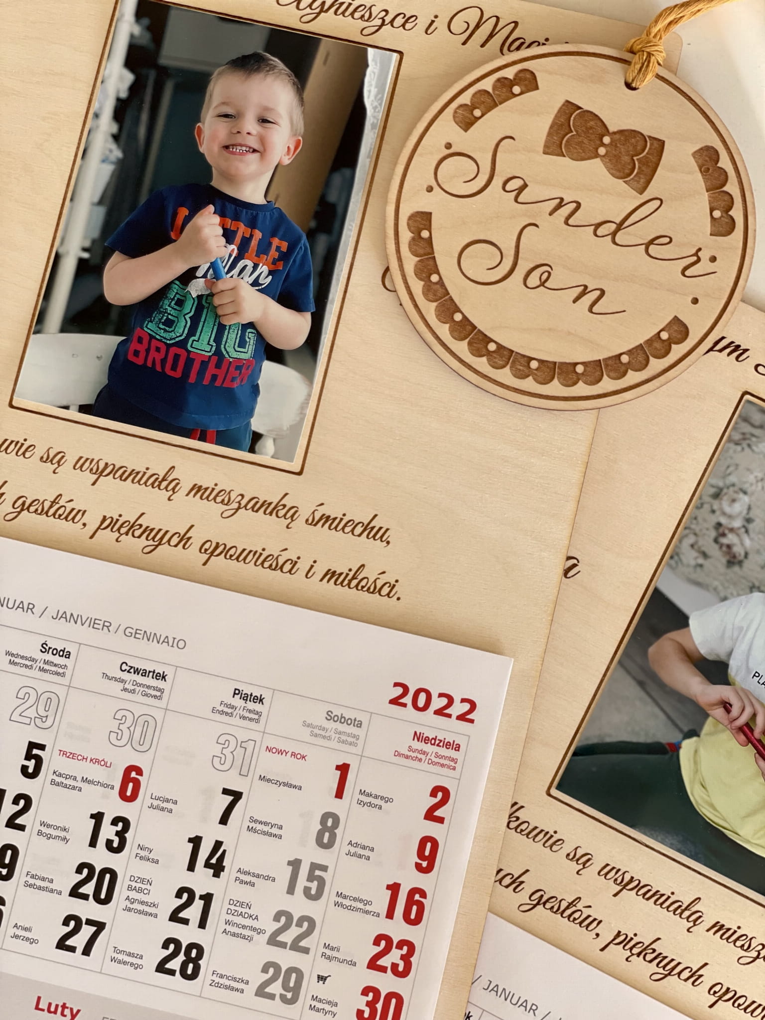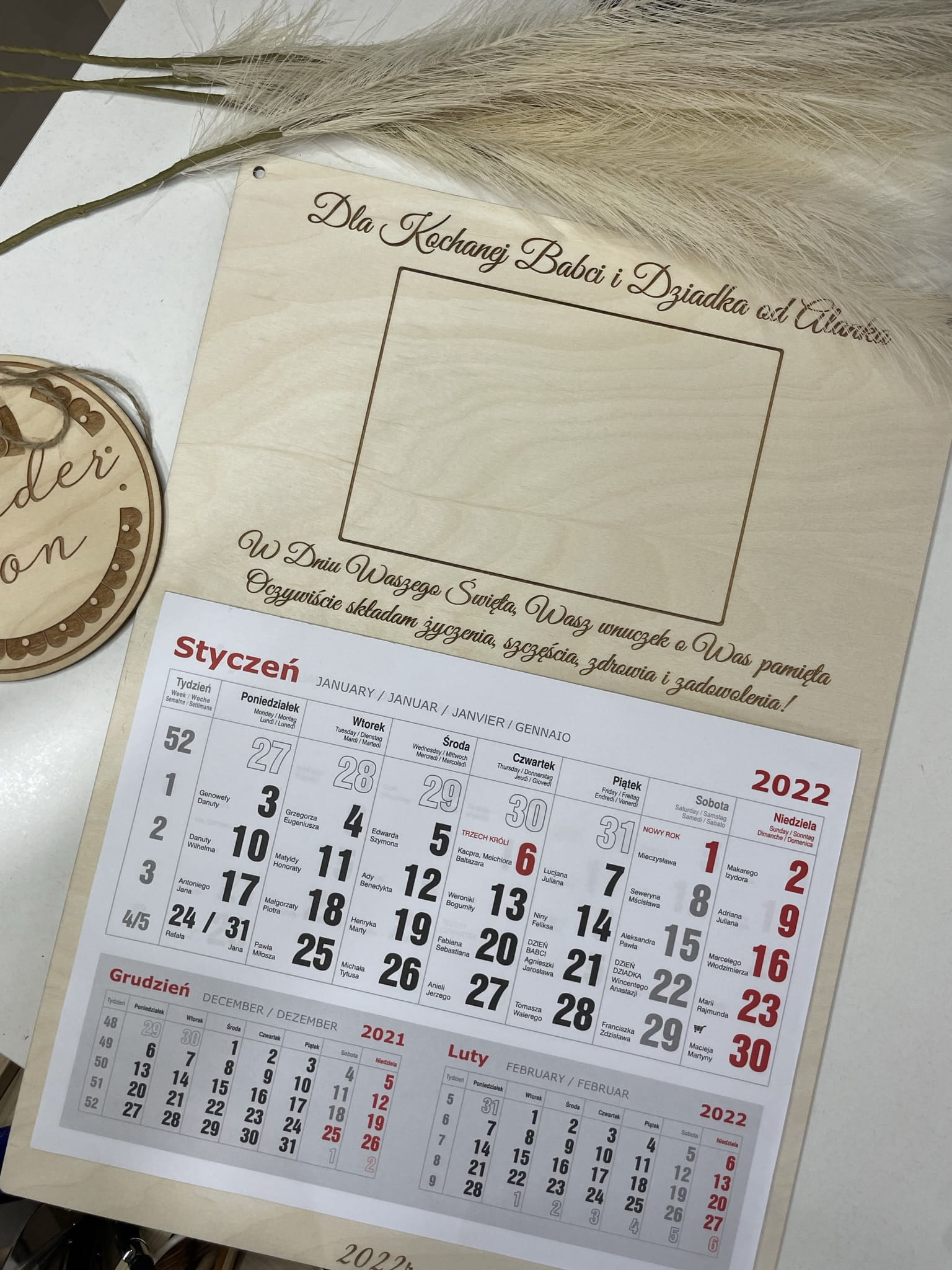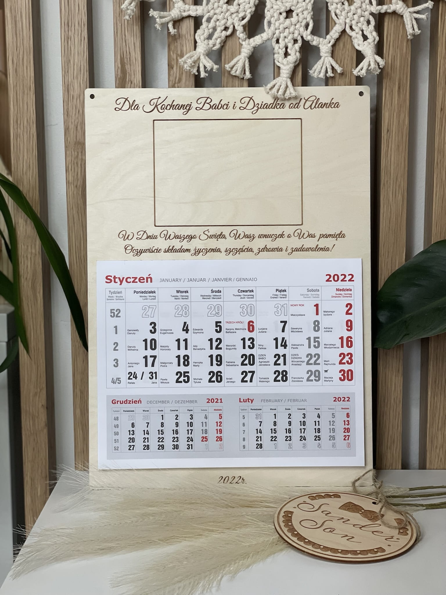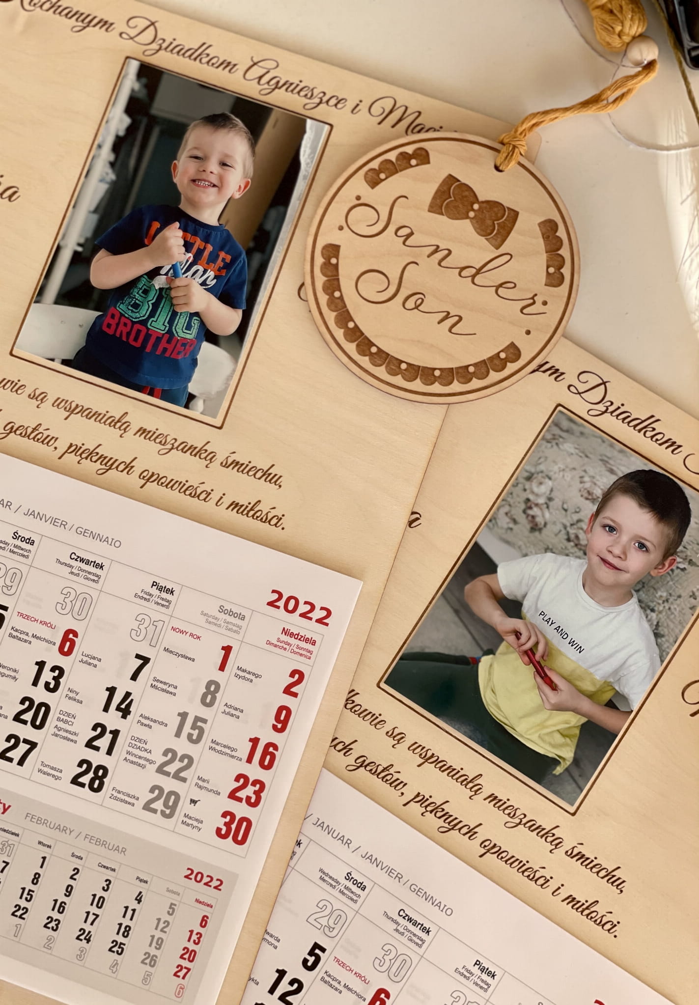 Na bazie kalendarza grawerowana jest ramka, w której możemy umieścić zdjęcie wnuków - w pozycji pionowej lub poziomej.