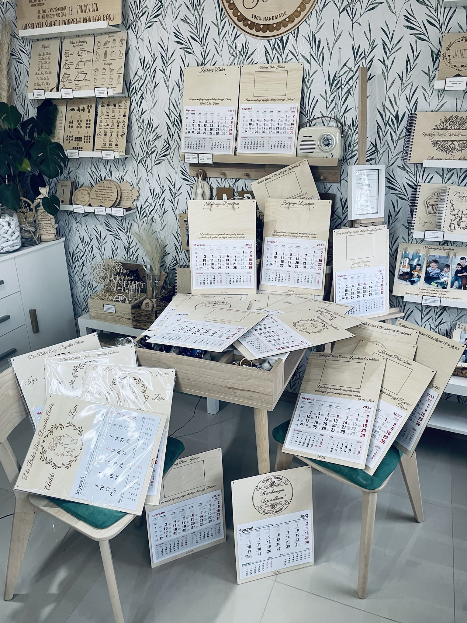 Piękny, praktyczny prezent dla Babci i Dziadka, cały komplet składa się z drewnianej bazy kalendarza oraz papierowe jednodzielne kalendarium na nowy 2023r.