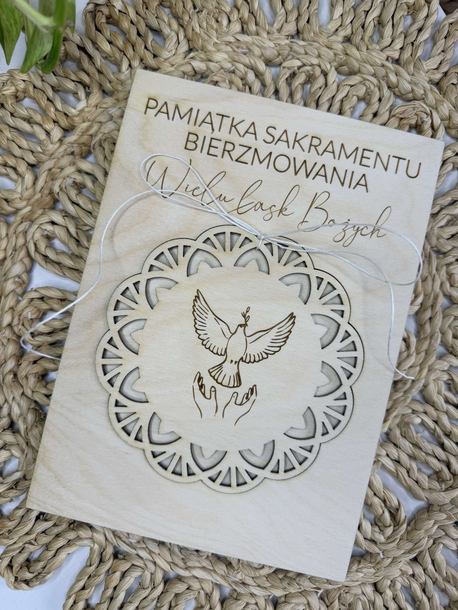 Elegancka kartka z ciekawym, wyciąganym motywem. Niezwykły prezent jako pamiątka bierzmowania.