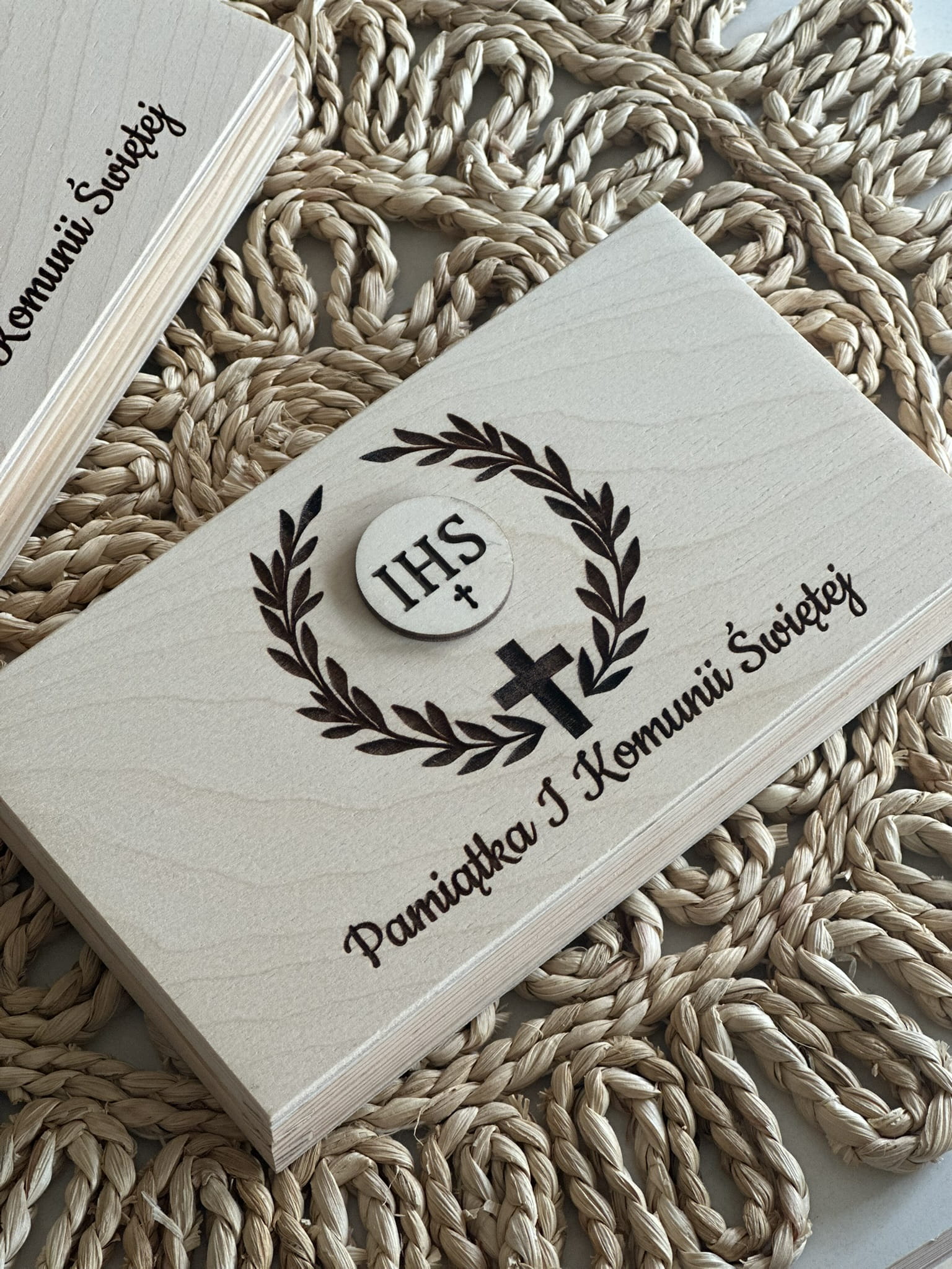 - drewniana wkładka z dedykacją w środku wykonana ze sklejki brzozowej 3mm
