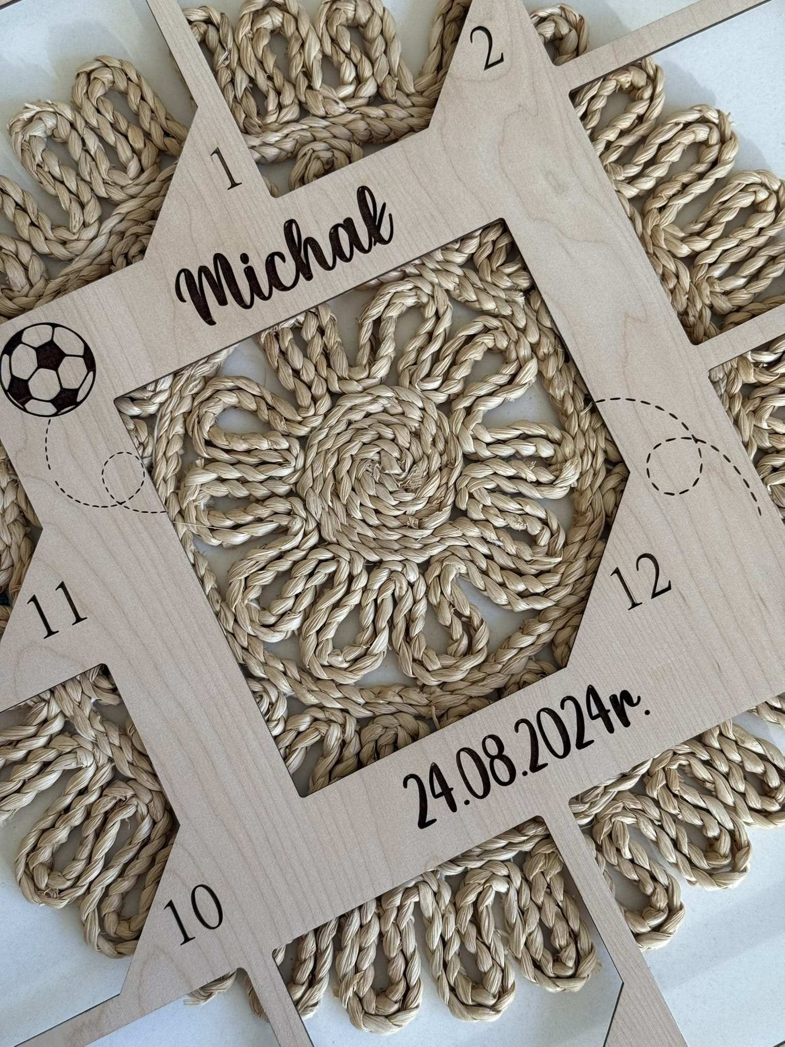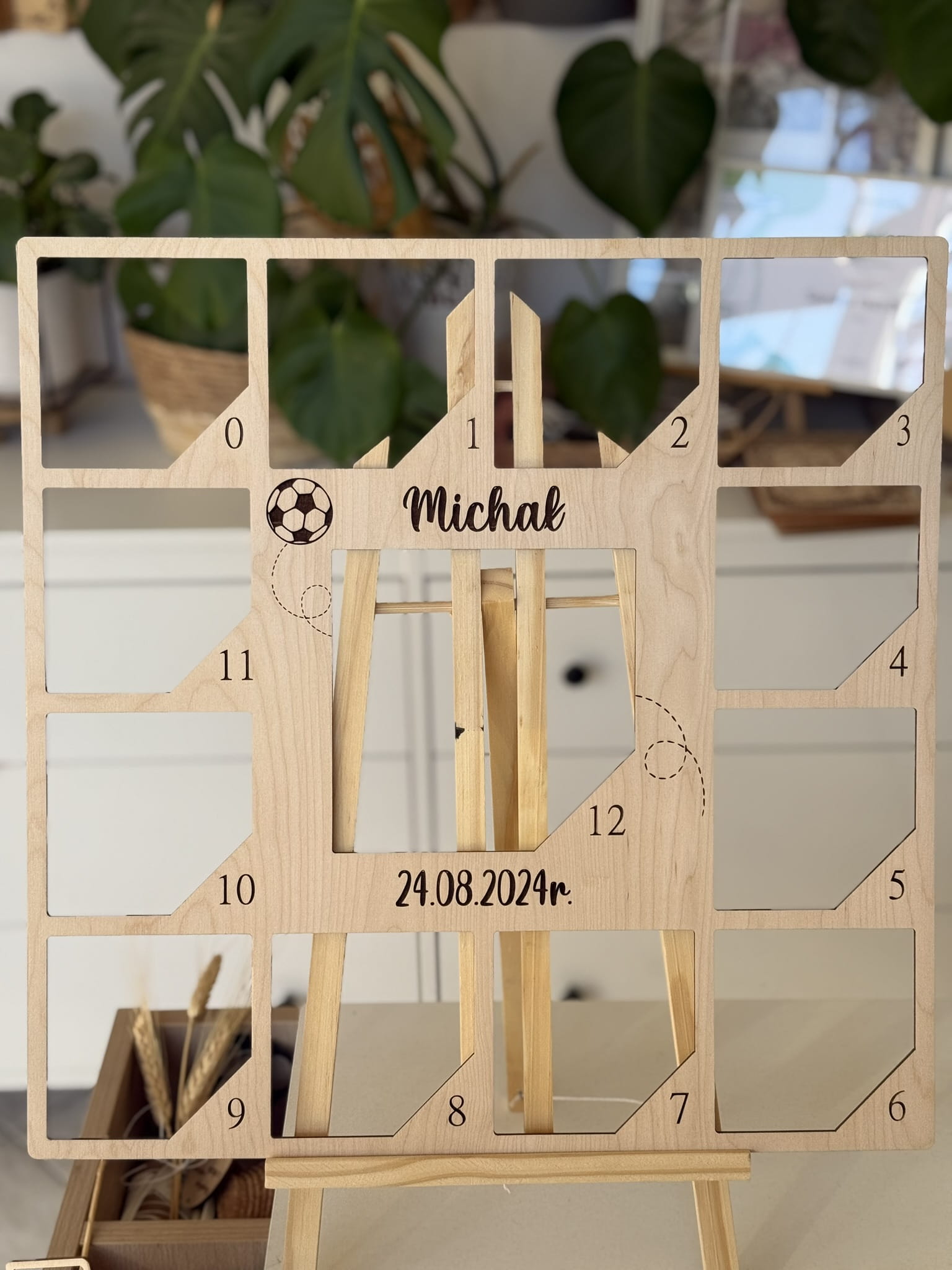 Drewniana ramka na zdjęcia z pierwszego roku życia Maluszka.