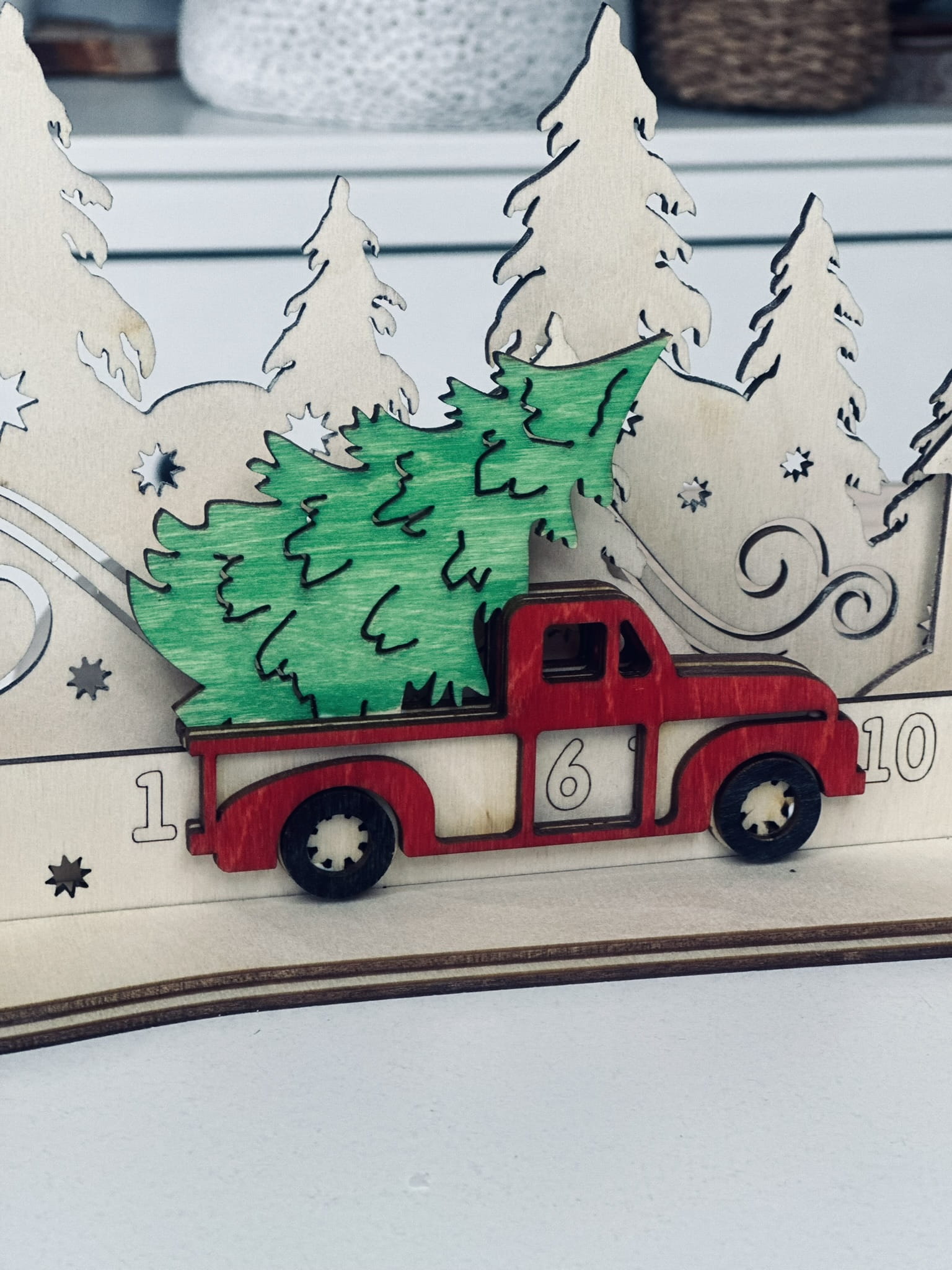 Samochodzik „jeździ” po listewce z wygrawerowanymi dniami grudnia, bez problemu można Go przesunąć bez żadnego wysiłku na kolejny dzień.