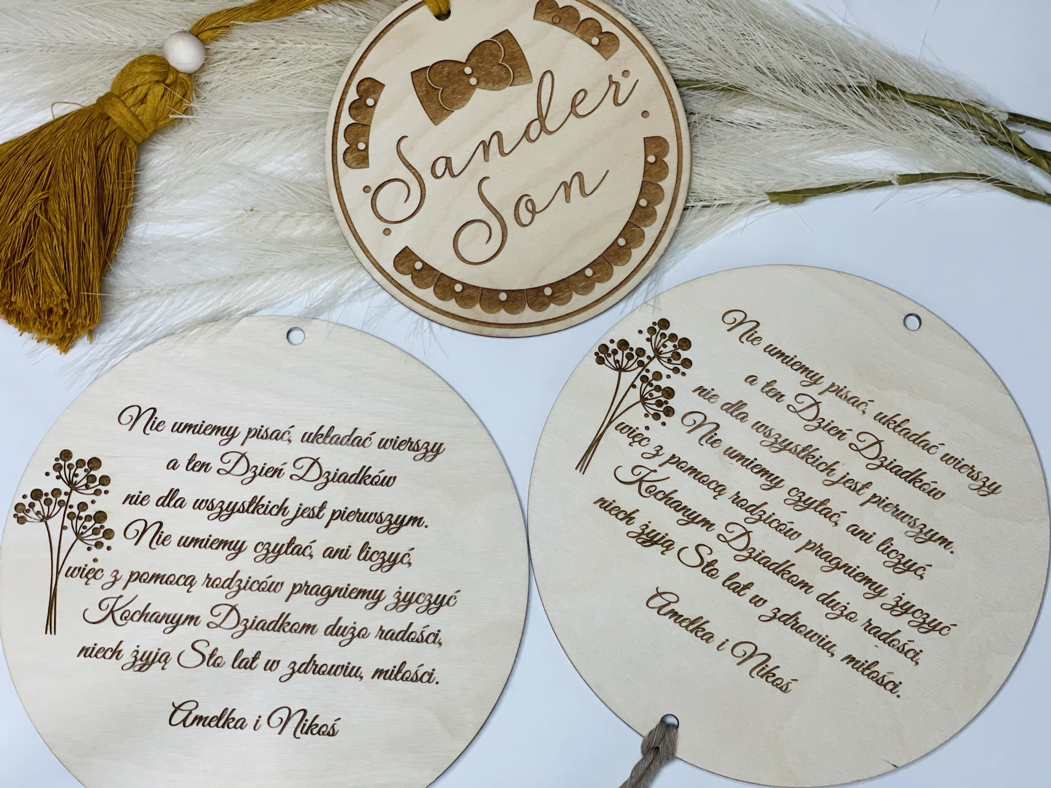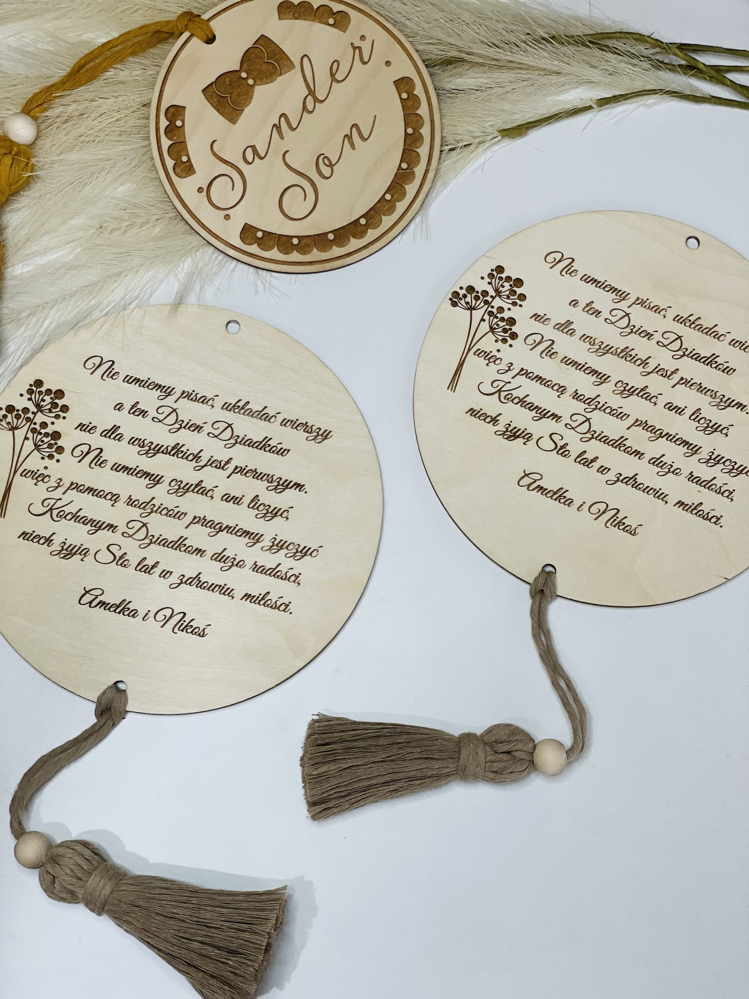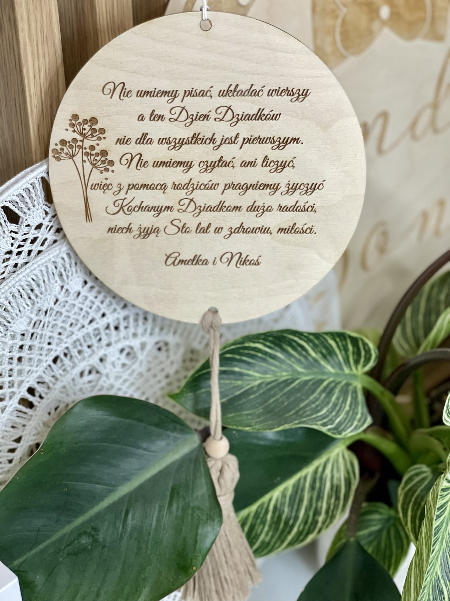Tabliczka ze sznurkowym chwostem to fajny pomysł na upominek- wpasuje się w każde pomieszczenie w domu Babci i Dziadka.